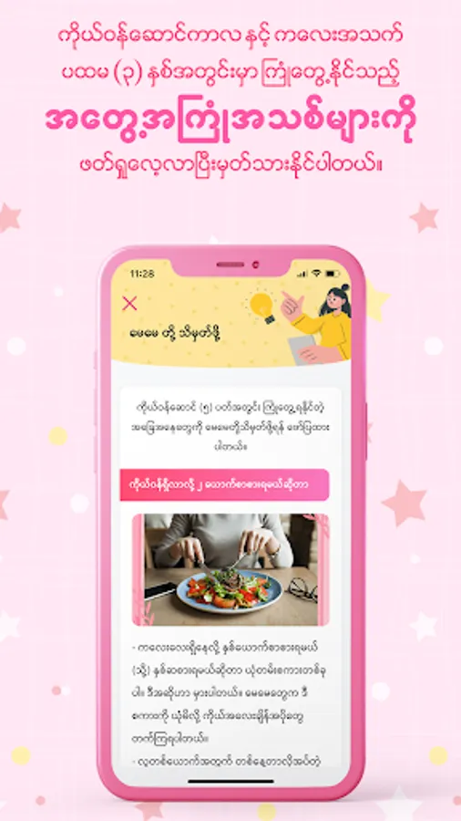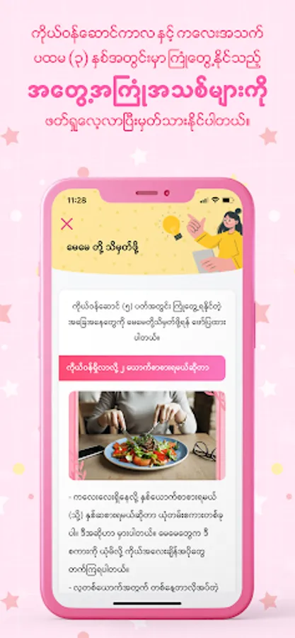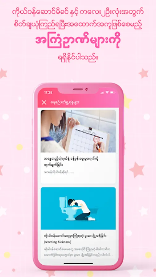 Helpful articles on nutrition and symptoms, what to do in emergency situations and to do lists according to gestational weeks and age of children are vital components of this app. The users would get the categories mentioned above on the bases of pregnancy weeks or their children’s age.