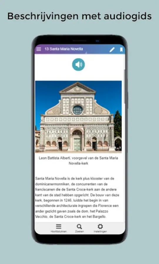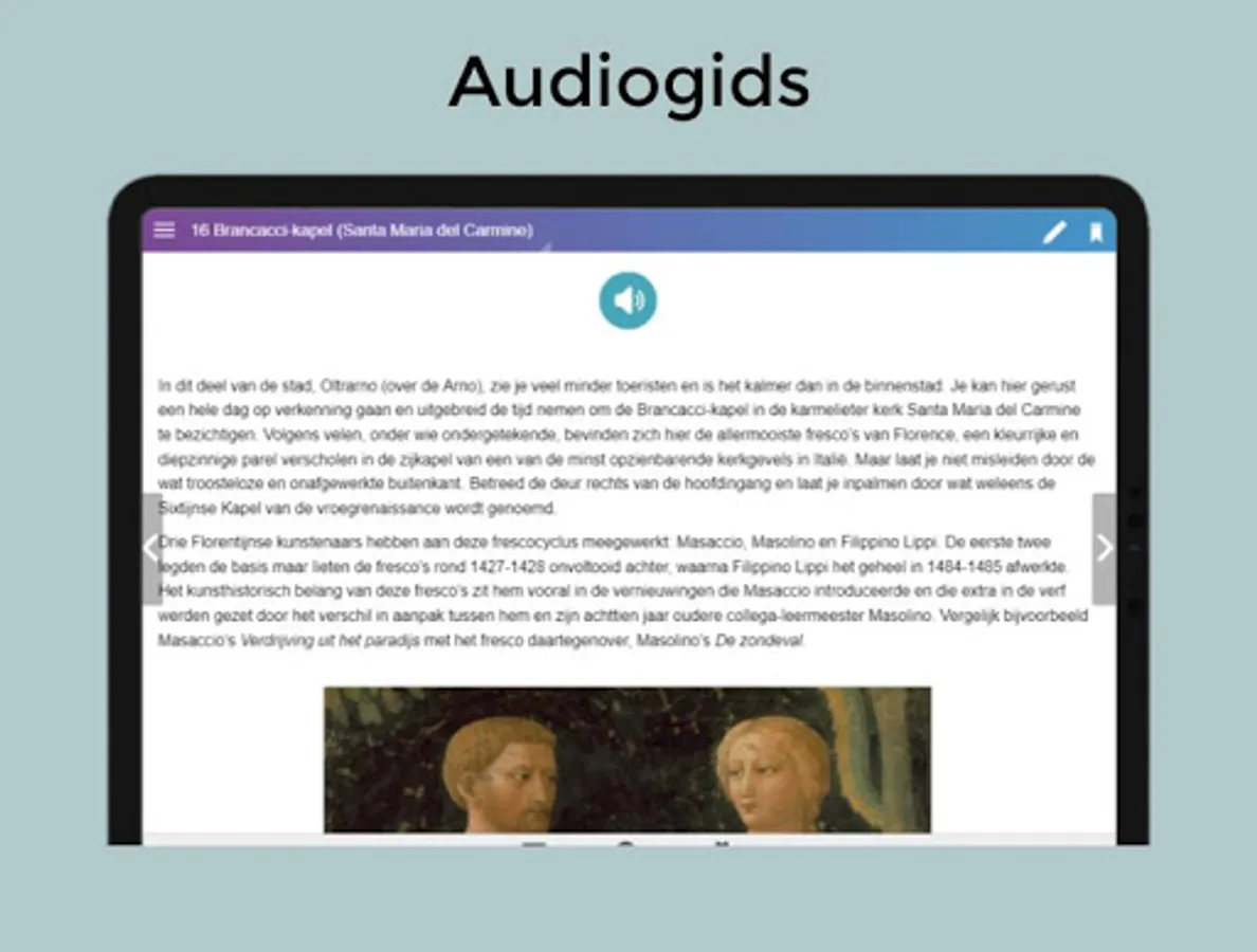 You can listen to the explanations and stories at each stop by pressing the audio icon.