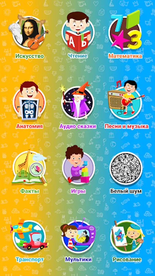 Flashcards, informative pictures and photos, sounds and videos, the most interesting information and facts, 3D models and augmented reality. Only useful and educational games that do not lead to gambling and child addiction. Children's songs, audio stories, soothing and classical music, white noise. The most convenient player to listen to. All the most popular cartoons available only with the permission of parents or guardians.
