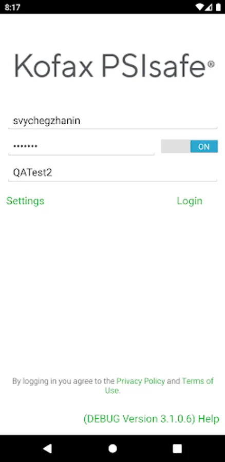 Important Note: Kofax PSIsafe Mobile app requires a Kofax PSIsafe cloud account or a Kofax PSIsafe server install version 10.3 or higher to operate. In addition a Kofax PSIsafe user license is also required. Kofax PSIsafe Mobile app requires a Wi-Fi or Cellular data connection to the Kofax PSIsafe server repository to send and retrieve information. Web Service server components are included with Kofax PSIsafe cloud. Kofax PSIsafe Open API w/IIS Server and Kofax PSIsafe Server must be installed for premises installed Kofax PSIsafe configurations.
