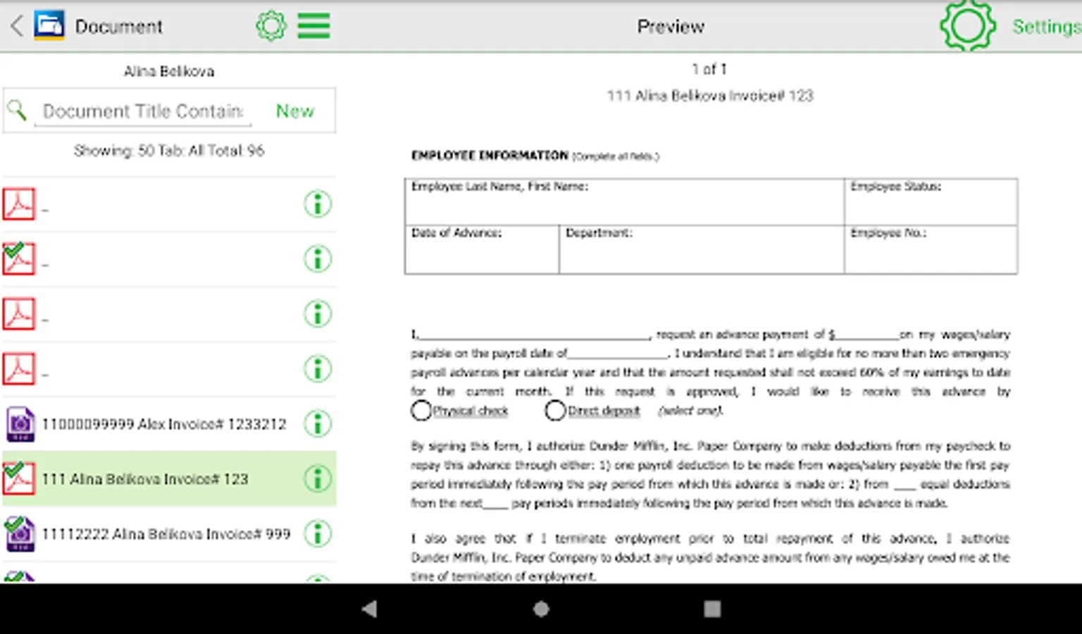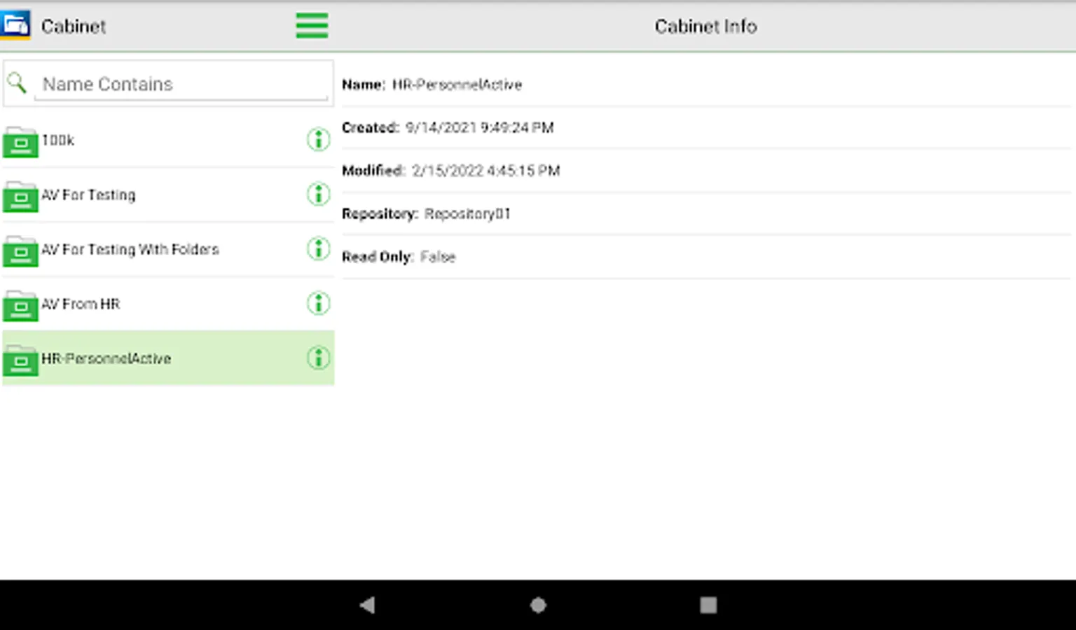 - Simply tap through PSIsafe's powerful filing structure of Repository, Cabinet, Folder, and Tab to quickly navigate to any document.