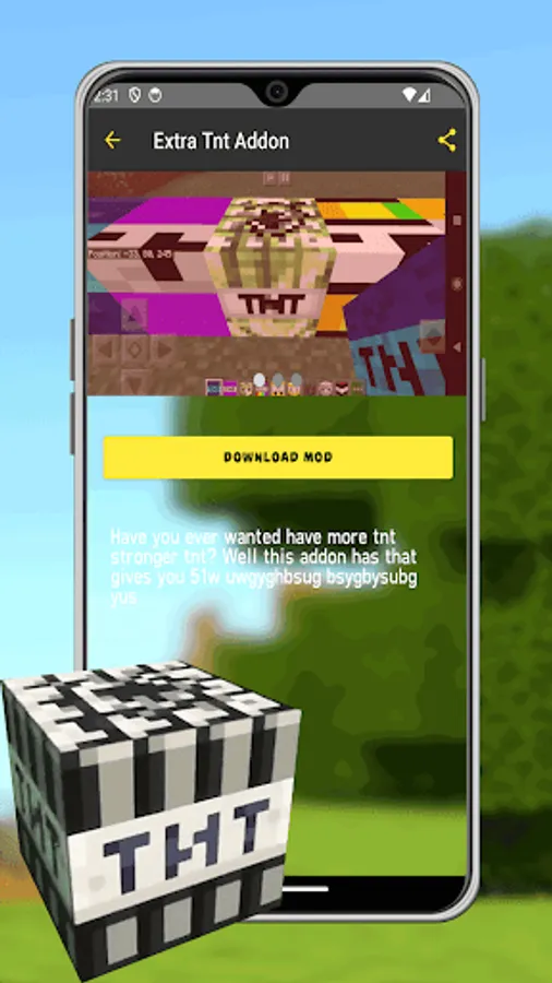 There are so many tnt mod minecraft explosions that make the tnt mod mcpe world even more crowded. the type of tnt mod minecraft pe you choose will determine how big the minecraft tnt mod mcpe explosion is, and usually you will make all the tnt mod addon for minecraft hearts that hear will also feel a great more tnt addon boom that makes the whole mobs tnt megapack addon will ask questions. a powerful explosion TNT Mod Addon For Minecraft will make the mobs tnt addon for minecraft that are approaching become just tnt block for mcpe bones. especially by using tnt for minecraft pe traps that allow you to strategize tnt dynamite mobs modpack to make the whole approaching tnt addons for minecraft pe will be hit.