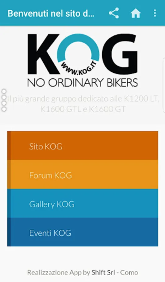 The KOG is an Italian group of owners of motorcycles BMW K1200LT, K1600GT and K1600GTL. All KOG members are regularly and organize rallies and events where you are all together and do the touring in Italy but also abroad. There is a discussion forum, a gallery that collects photos of all events and a dedicated website and the App you can access all of our infrastructure on the internet quickly and easily