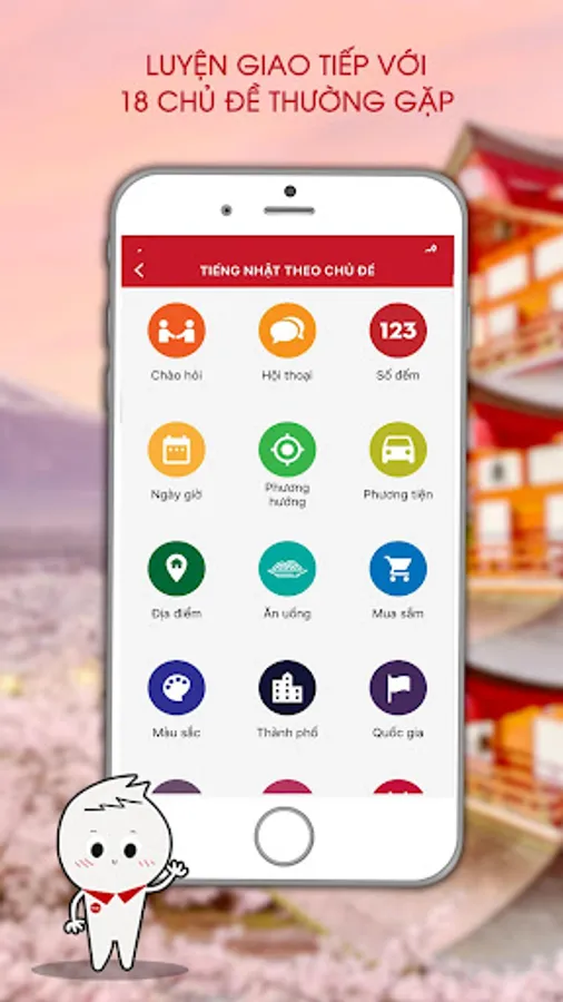 Learn vocabulary through images vividly drawn by Kohi with standard Japanese pronunciation. In particular, you can record your voice and Kohi will analyze the accuracy, return the results according to a rating of 1 to 5 stars, helping you both practice words and correct pronunciation.