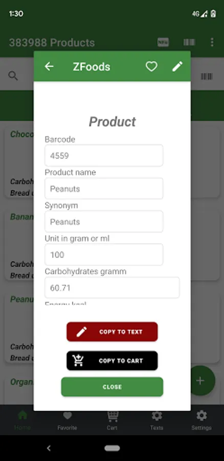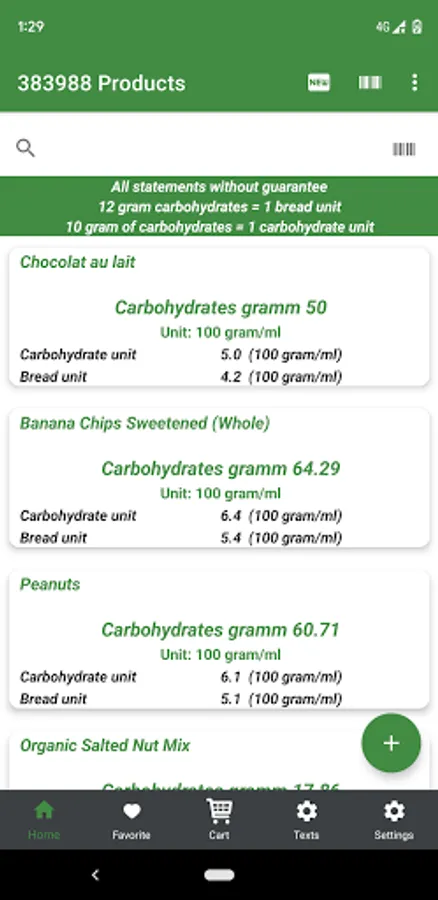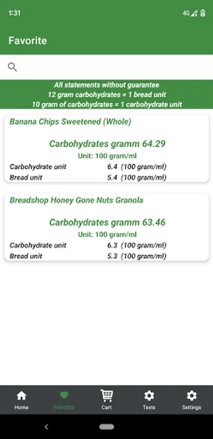 The nutrition database is for informational purposes only ! The app is also interesting for diabetics. The bread units or carbohydrate units per 100 grams / ml are also displayed in the overview.
