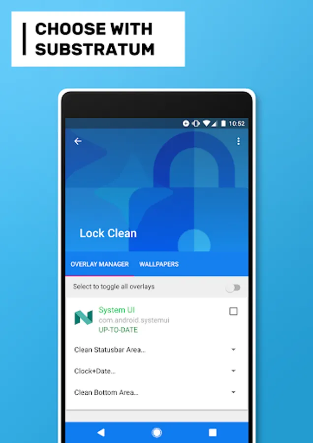 Make sure LockClean overlays have a higher priority than other SystemUI overlays. The option to change the priority of overlays is in the Substratum App side drawer.