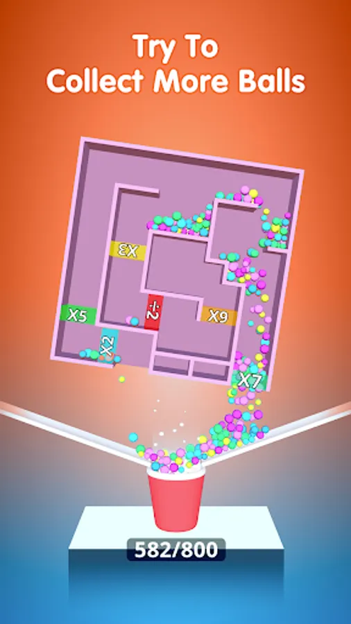 Maze Collect Game is rotate Puzzle game out there. Spin the wheel maze, left or right, to let the ball drop in the cup.you can multiply them and fill the cup.collect as many balls as you can to get through the level!