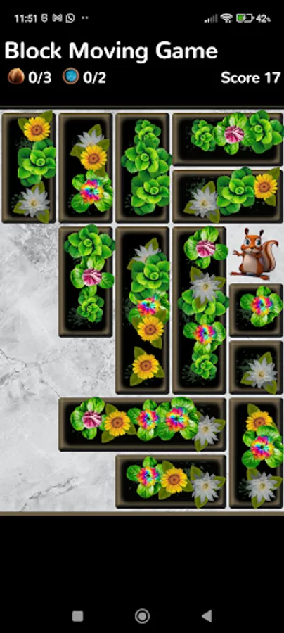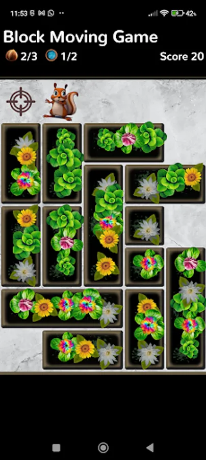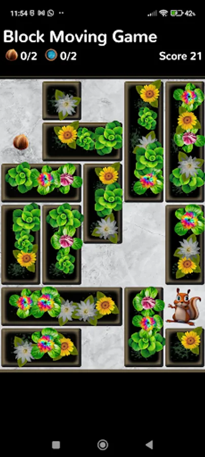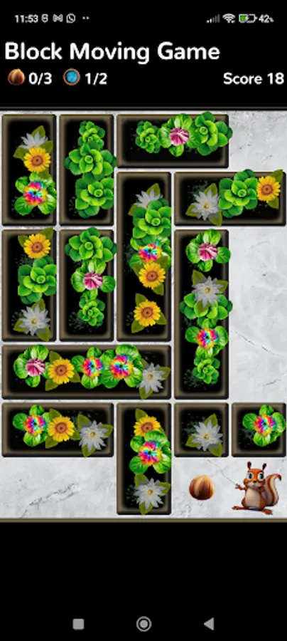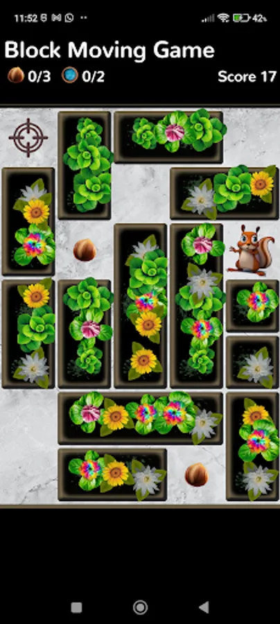 Move the flower boxes so the squirrel can collect nuts and drink water. When all the nuts are collected, the exit to the next level is activated.