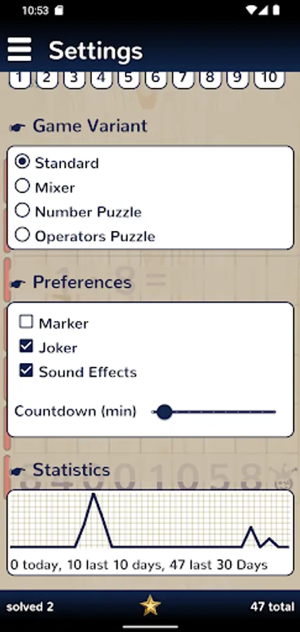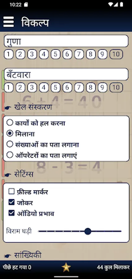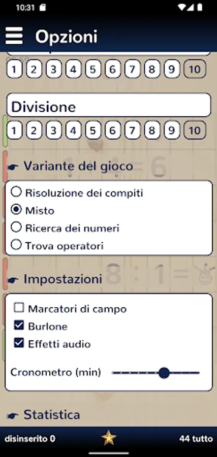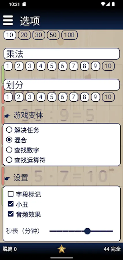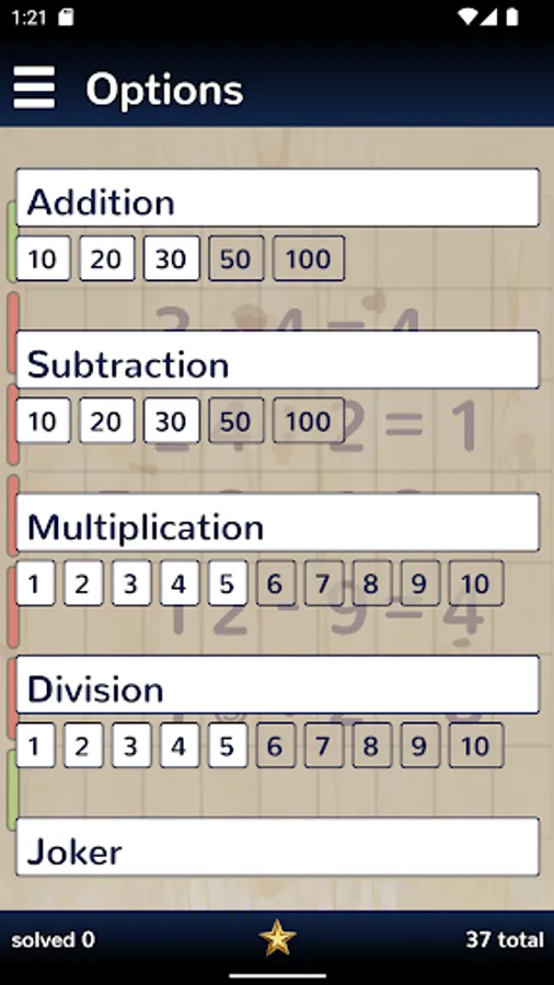 The extensive settings allow targeted practice of specific number ranges and arithmetic operations
