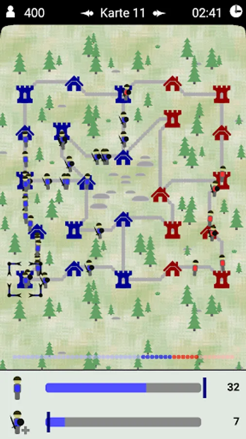 Train workers and soldiers and find the right strategy to defeat your opponents in this real-time strategy game.