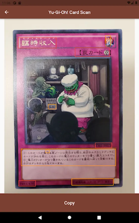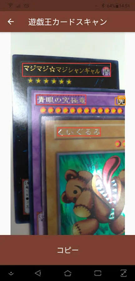 "You can take photos of the Yu-Gi-Oh trading cards and copy/paste the card names and model numbers. Recommended when applying for early/new series when using flea market apps. An English version can also be scanned. After scanning the product name with this app, you can paste the copied text into a web page or apps for market search purpose.