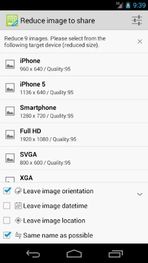 - Can be image reduced by selecting any target device (Image size after reduction). Settings for Smartphone, Featurephone, iPhone, etc, are provided by default. Can also add any new settings.