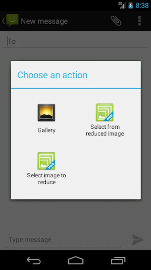 Use the "share" of Android. Image reduction before uploading to Facebook, Twitter and any app or attached to an email.