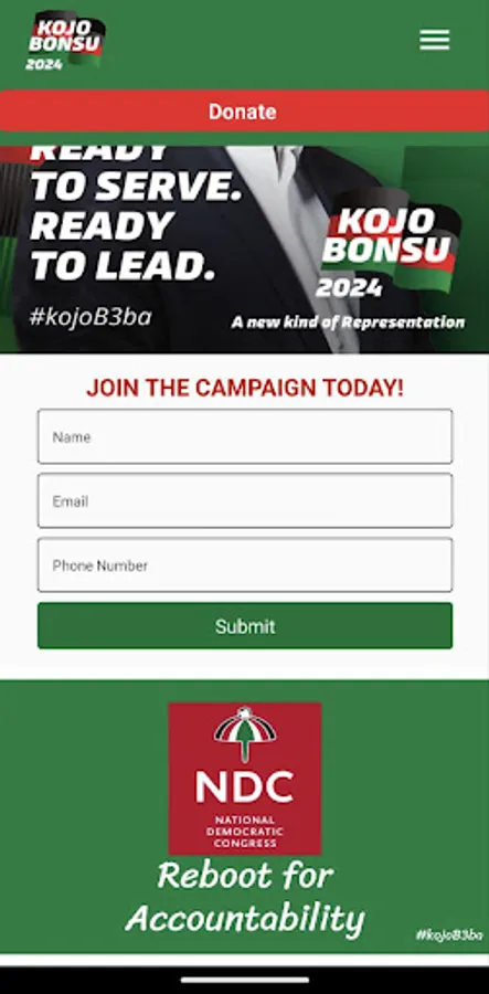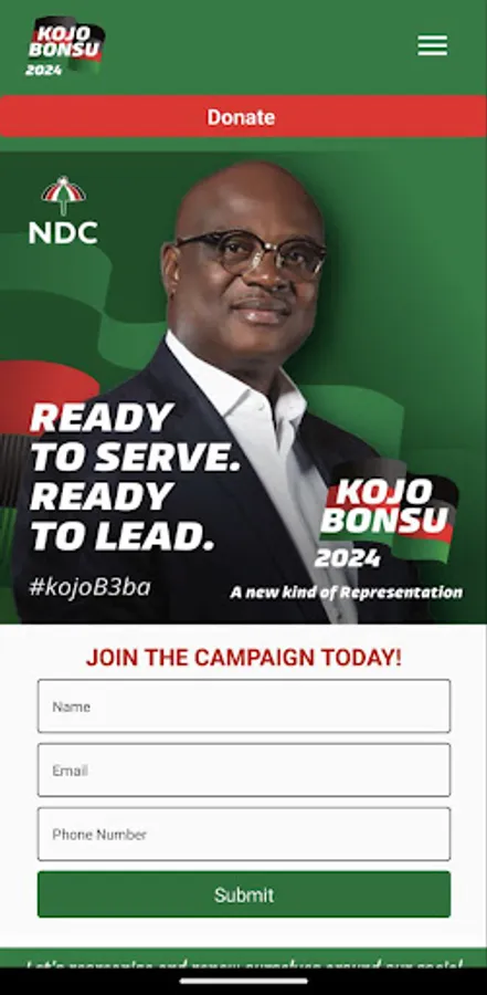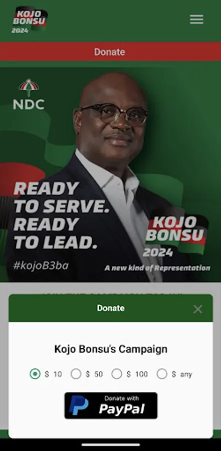 Campaign PayPal donations App for Kojo Bonsu, an aspiring NDC flag bearer for Ghana's 2024 election