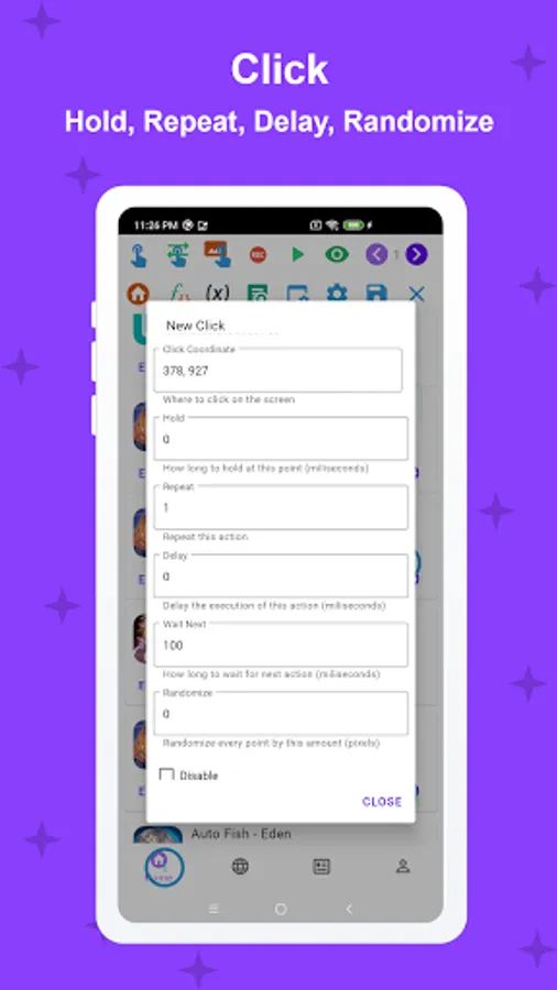 The app requires Accessibility Service to perform auto-clicking, paste text, press navigation button, etc. No data is collected or shared