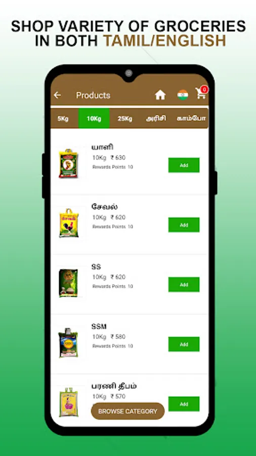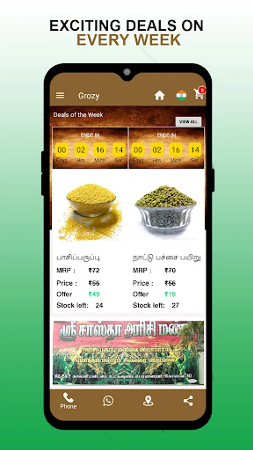 Available Categories – Rice, Paruppu, Payiru, Thaniyam, Oil, Flour, Vadagam, Semiya, Grocery, Masala and Sweet