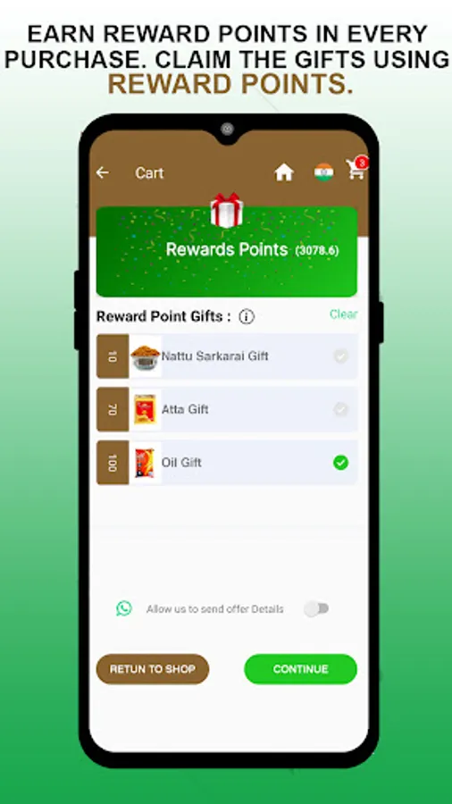 Earn reward points on every product purchase and use reward points to get discount/gift on next purchase.