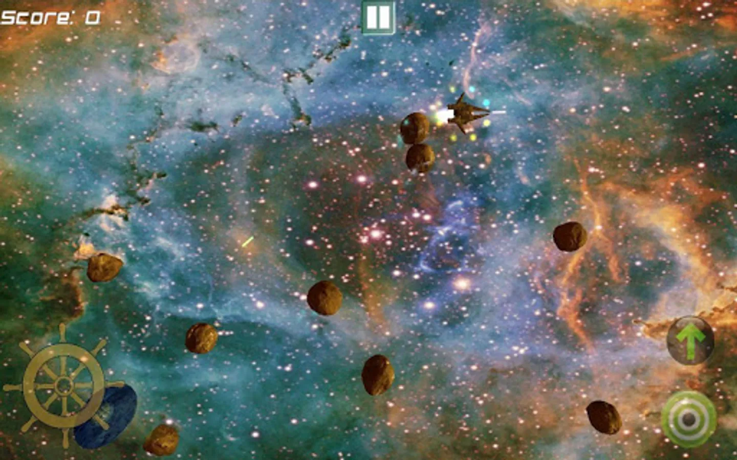 You only have your particle shield and your laser to defend yourself. If a rock hits your shield, it will explode and disable your shield. Your shield will then slowly recharge itself. Attention, each time you fire a laser blast, you will lose 1 unit of shield. On the contrary, if you wait long enough without firing laser, your systems will be overloaded, which will give you access to the powerfull ionised shield and lasers.