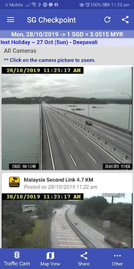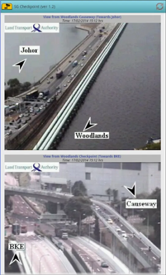 Live Webcams: View live webcam images from key traffic checkpoints, including Woodlands Causeway, Second Link at Tuas, Tuas Checkpoint, and more.
