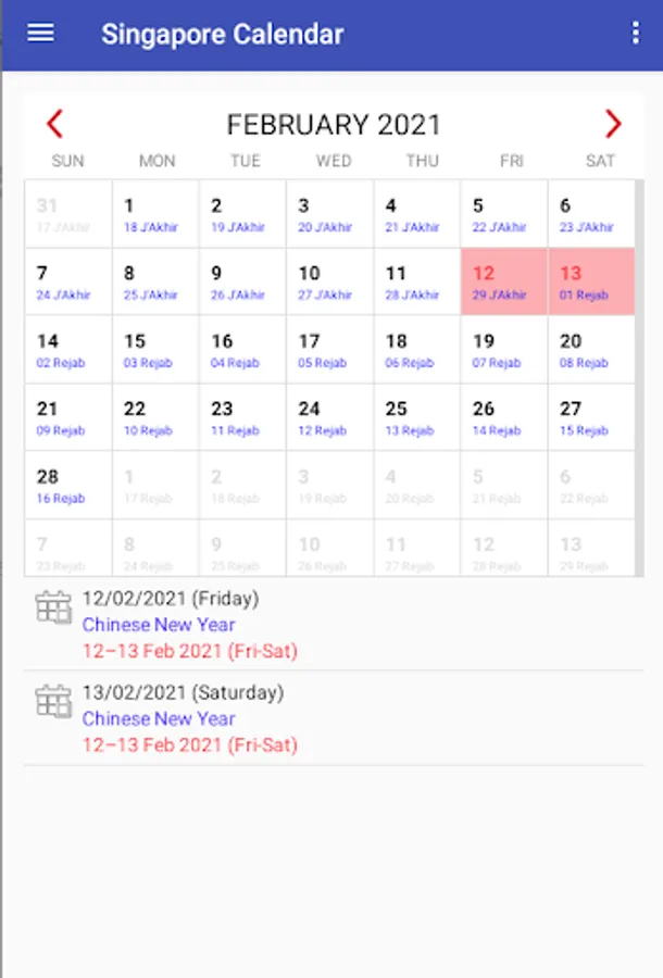 Customizable Calendar Views: Tailor your calendar by toggling the Chinese Lunar and Islamic Calendars on or off, ensuring you see the dates that matter most to you.