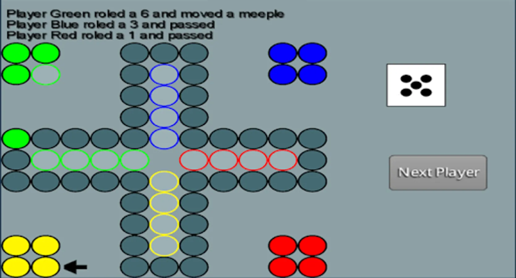 The goal is to move your meeples to the finish faster than all other players, but mind other players. They can kick you off the field.