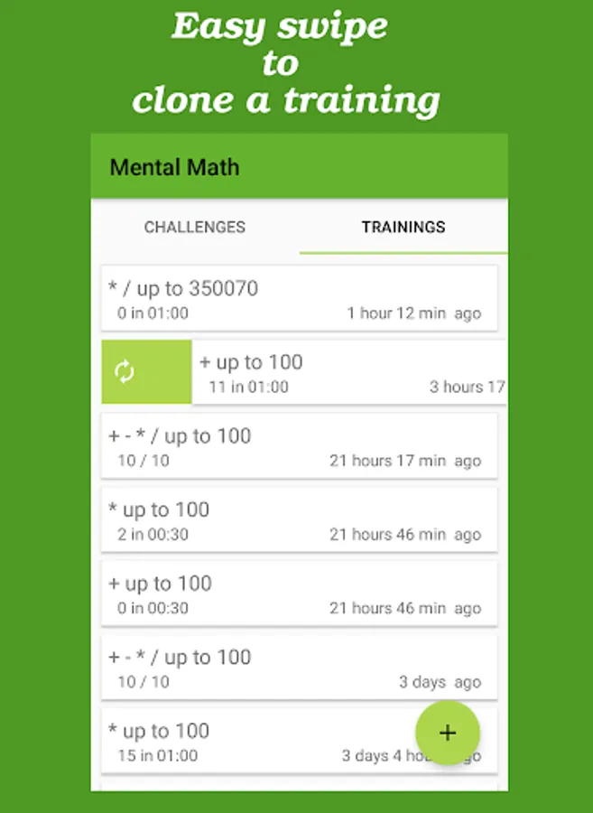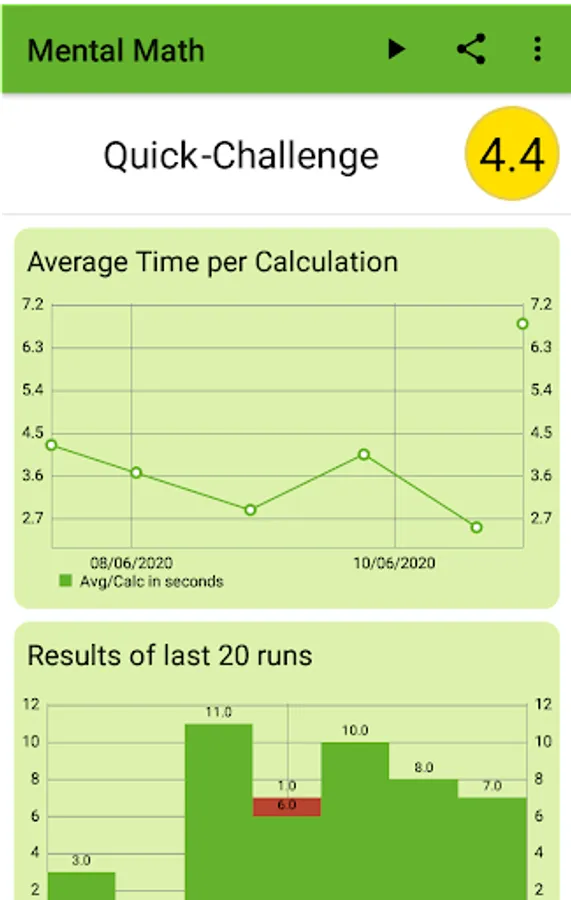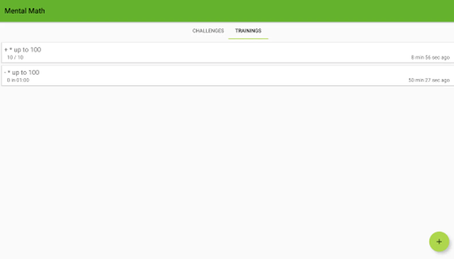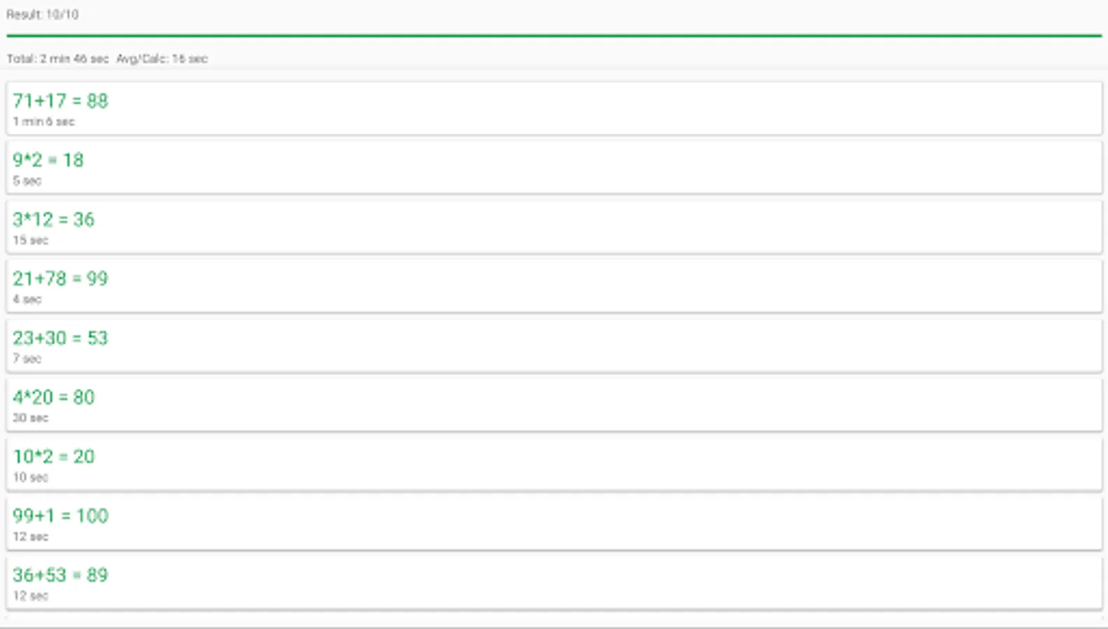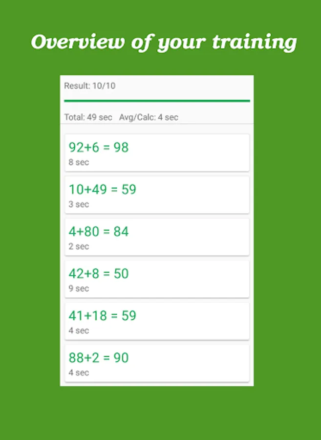 The first and easiest thing is to just start a new training on the main screen. Choose your operations and how many calculations you want to do. Limit the range of numbers as suitable and click on start. In the summary you will see your total time and average time per calculation.