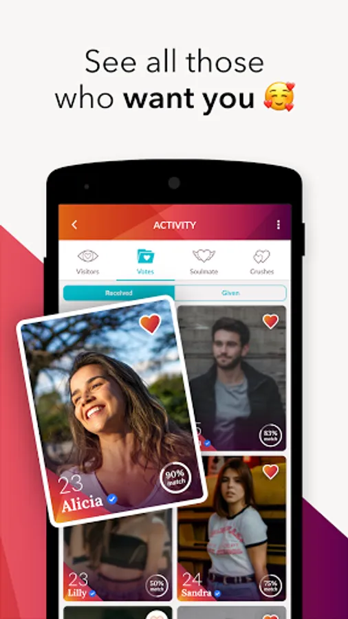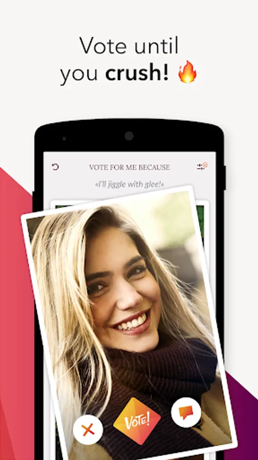 Koko is the app to find people nearby in a fun and easy way. Vote for guys and girls, and if they vote back, voilà, it’s a Crush! The more you vote, the more chances you have of finding your dream date! So, chat online, make a date, and meet up in real life! In the end, it leads to a ton of FUN, and maybe a bit of smooching - if you’re lucky!