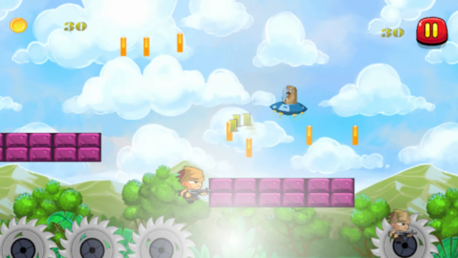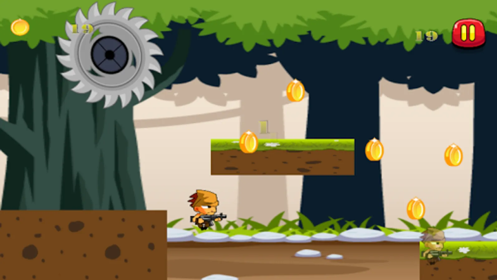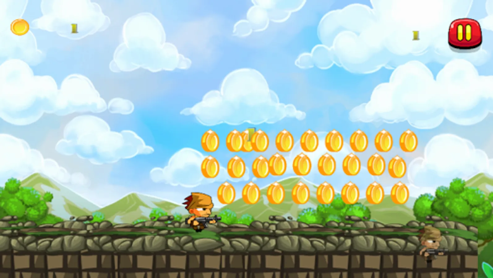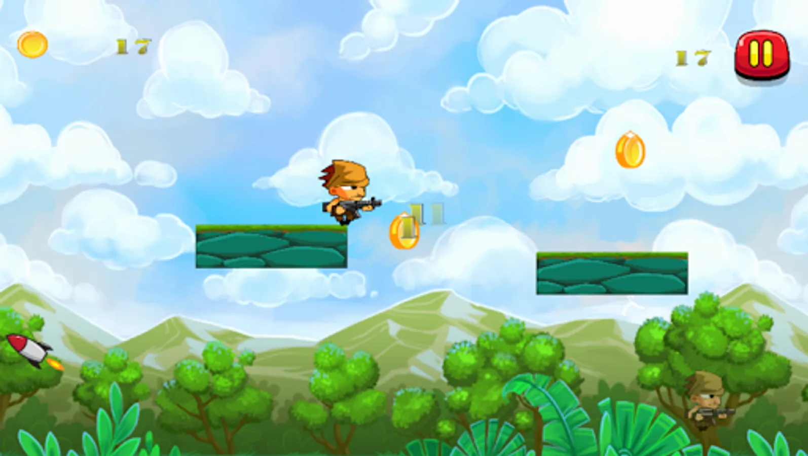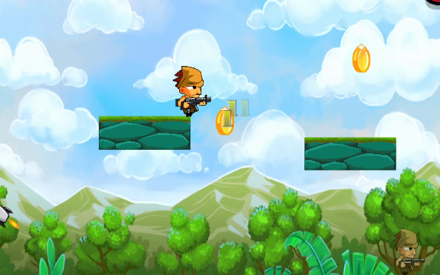 Super solda jump run . C'est un jeu de plateforme où vous devez passer le personnage principal, soldat, à travers les obstacles pour sauter sur le niveau et collecter des pièces.