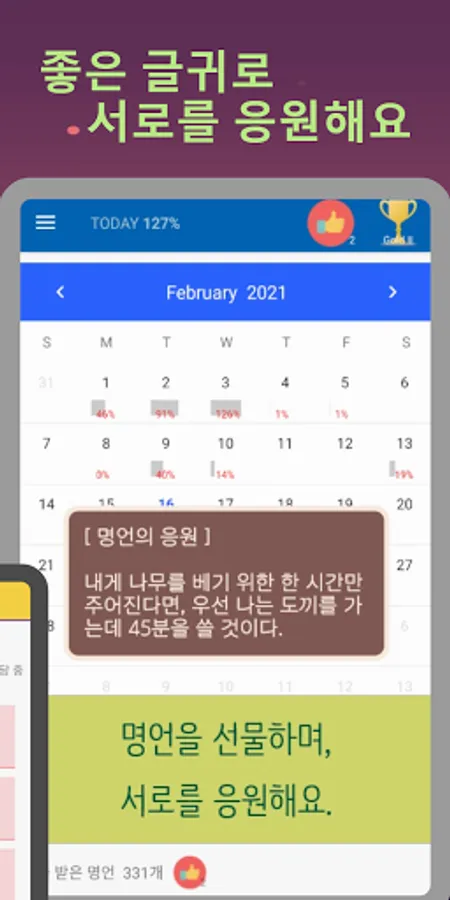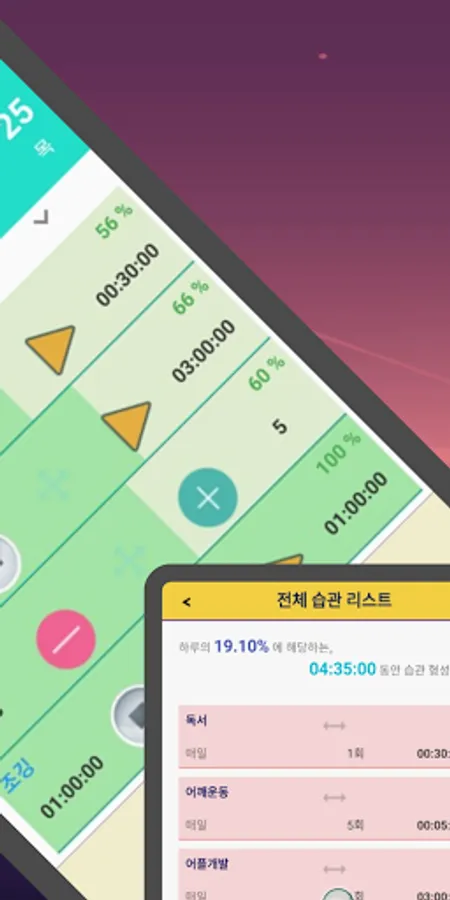We grasp the execution rate of habits at a glance and stimulate practice through light competition between users. Your life will be enriched the more the portion of the day a good habit takes up.