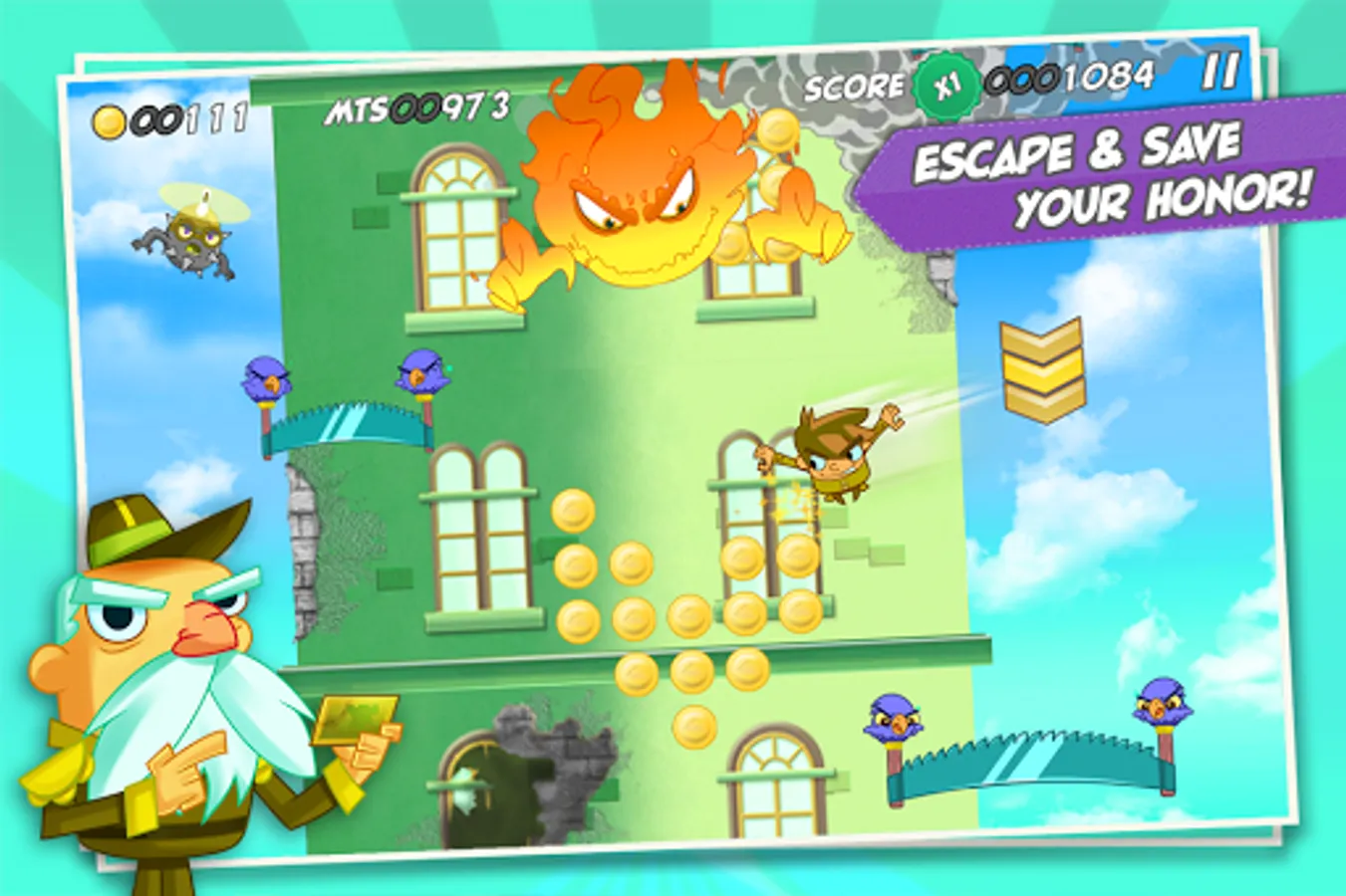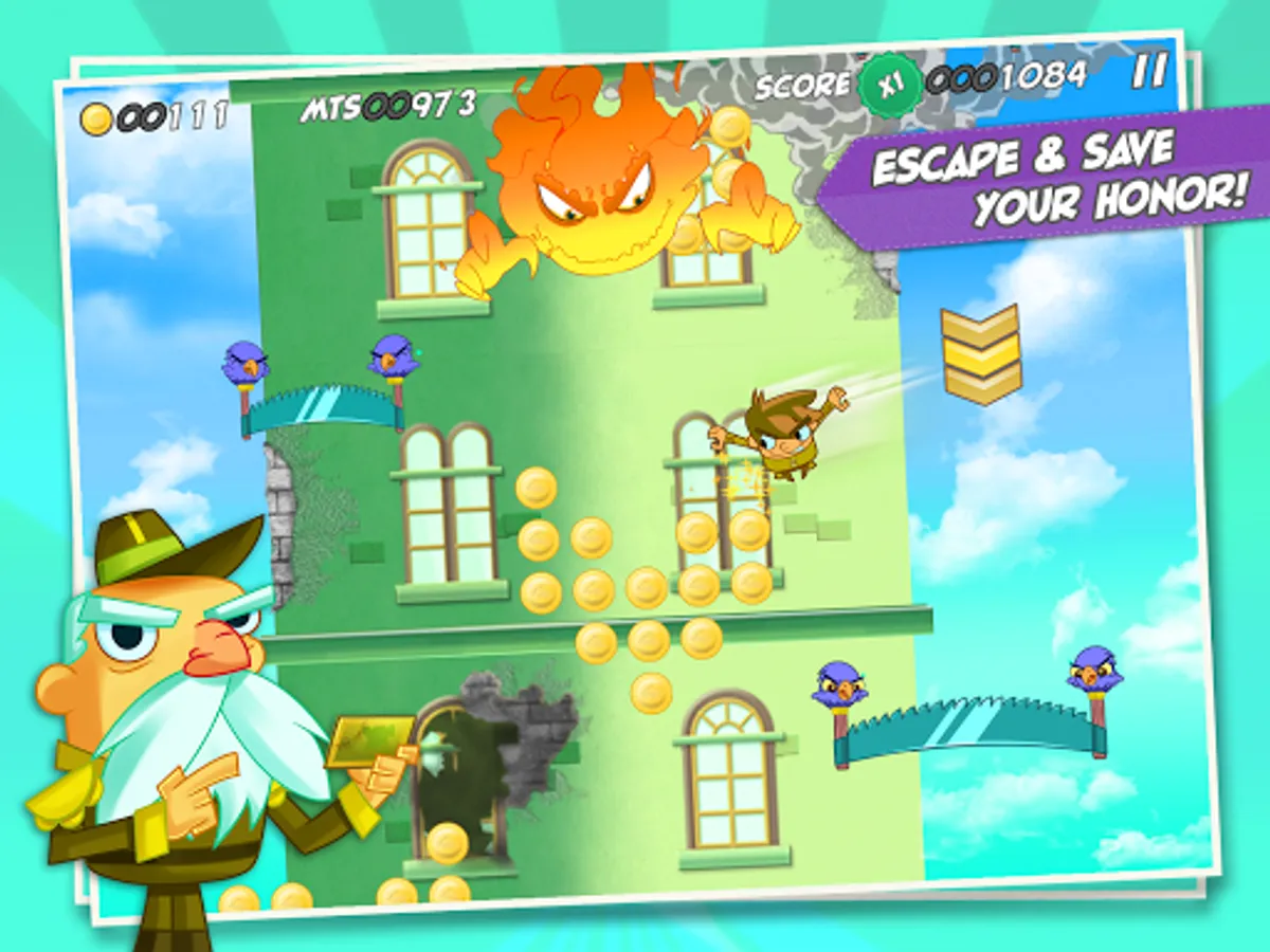 Help our Sky Hero fulfill General Barbas’ last wish and make it to safety, dodging saws carried by birds, cannon balls, rogue mustached barrels, and more craziness.