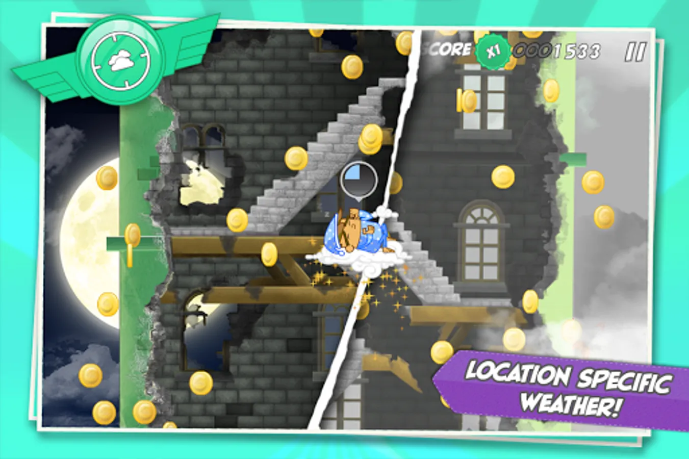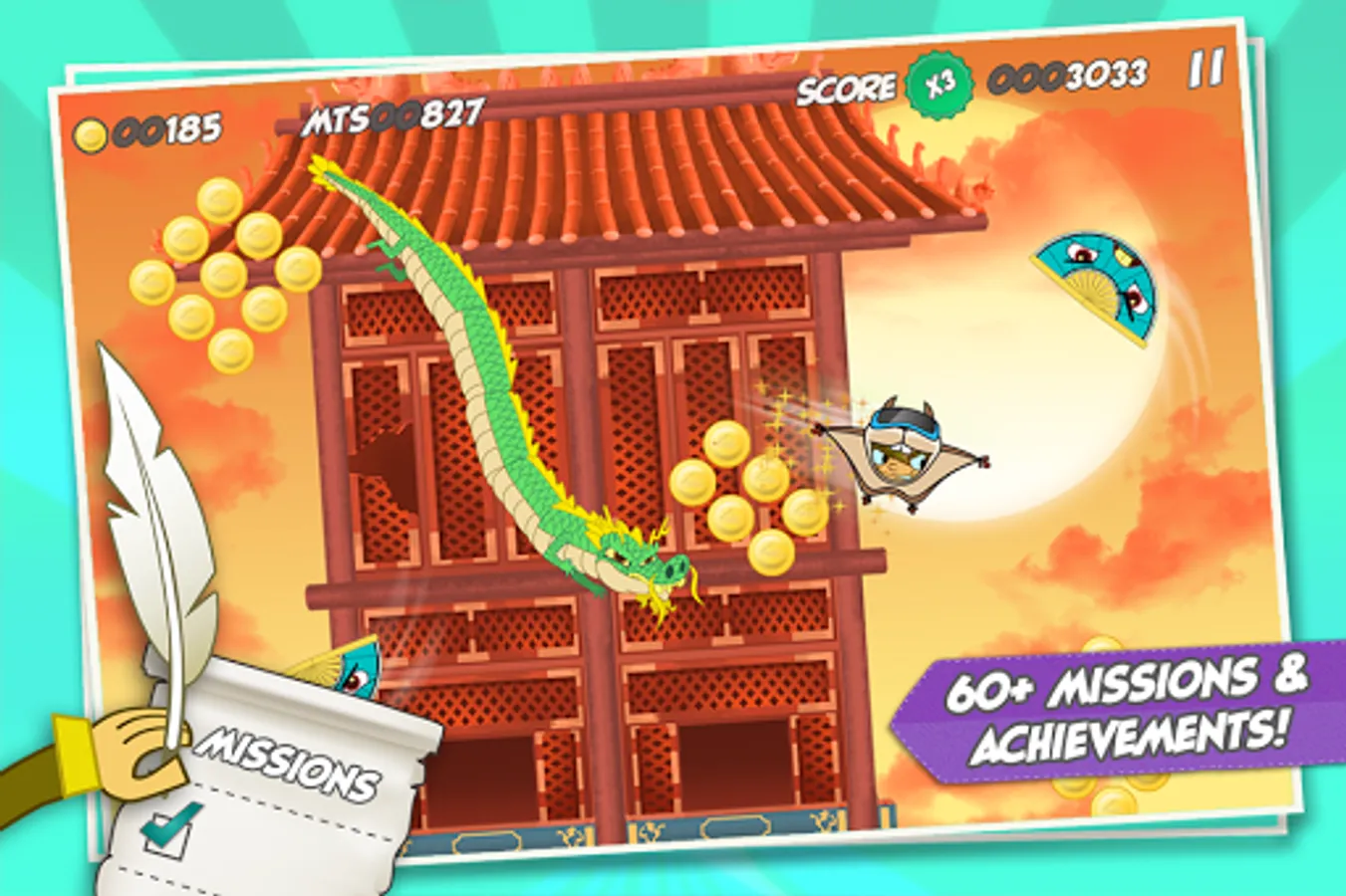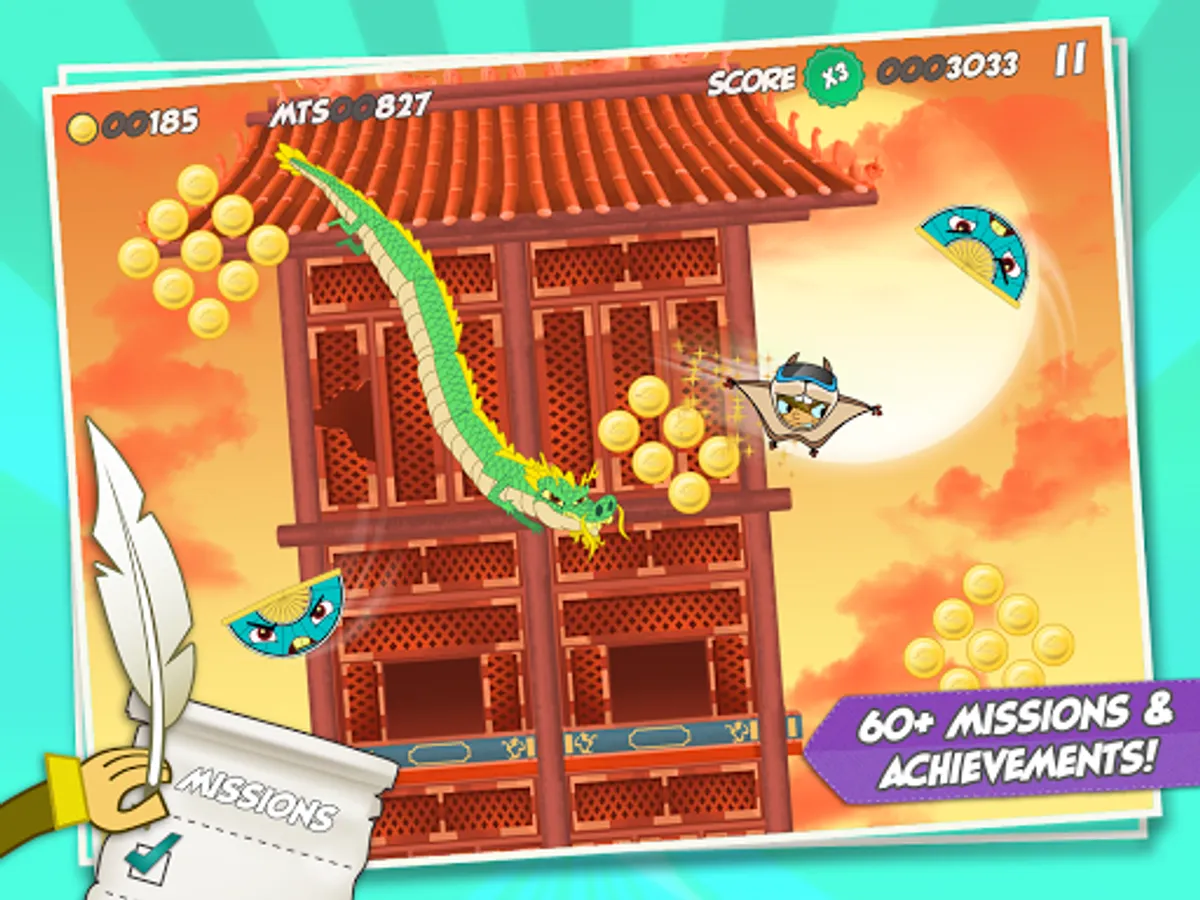 Complete 60 missions and discover new challenges, enemies, and power-ups by playing Sky Hero in new locations and at different times of the day.