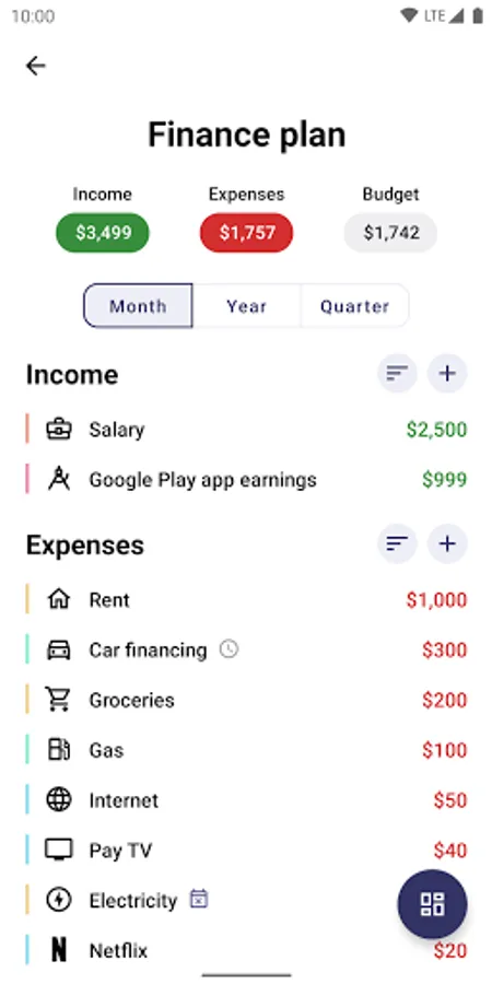 Instead of using a piece of paper, an Excel spreadsheet or a notes app, you enter your data into Finny and have different views of it presented to you.