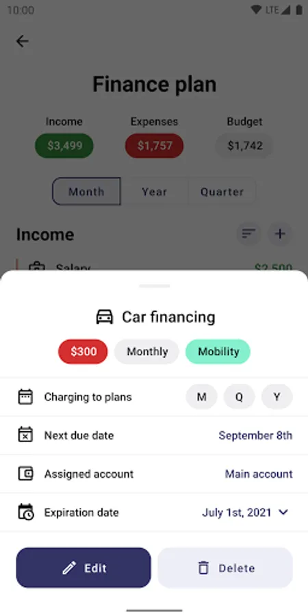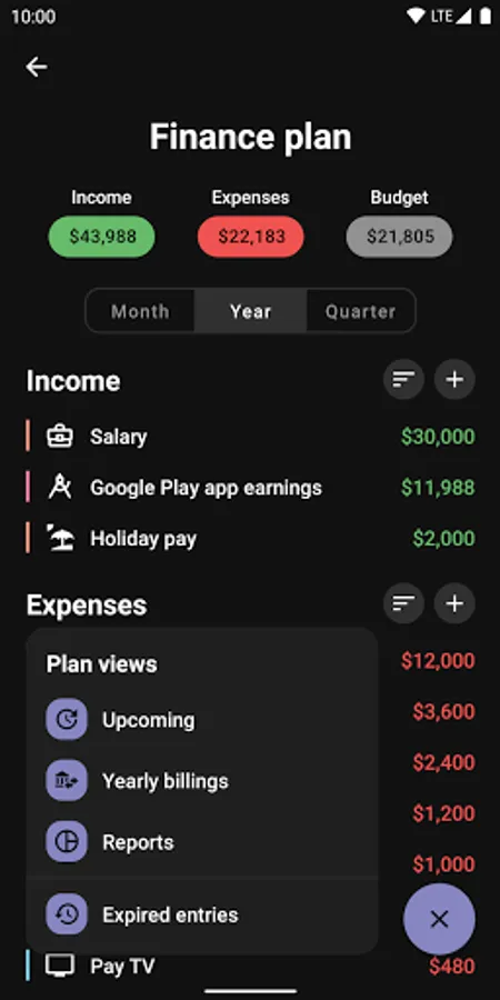 Besides the standard view, there are other plan views available, e.g. reports, upcoming expenses, etc.
