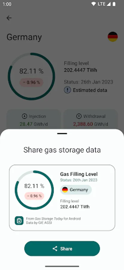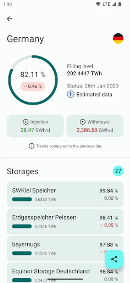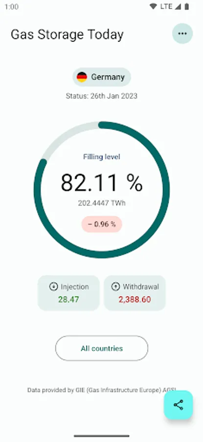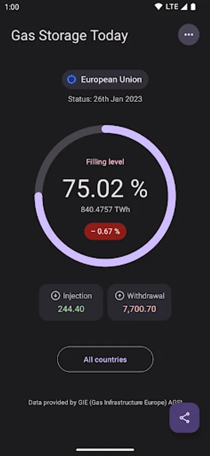 This app provides you with daily data on the filling levels of gas storage facilities in Europe.