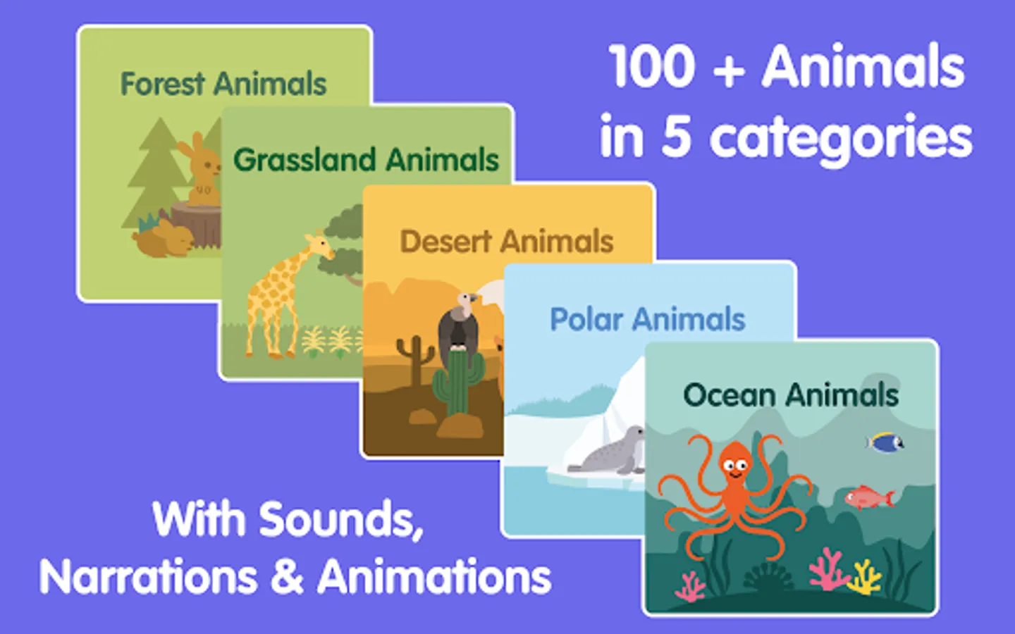 learn animal spellings. As one of the best kids educational apps, this platform offers wide collection of animal games for kids where the animations of animals for kids are present for learning. Immerse yourself deep into the world of interactive learning memory puzzle game to learn about animals featured in this animal learning app.