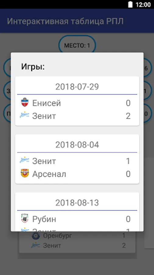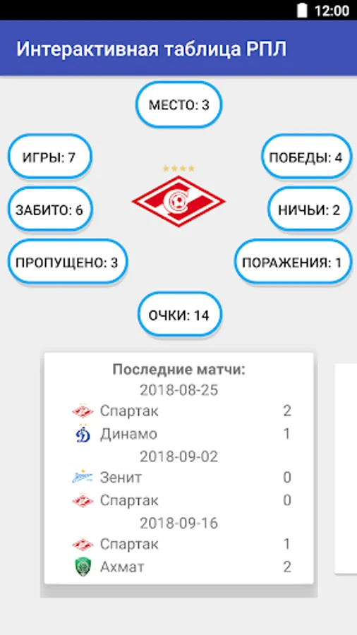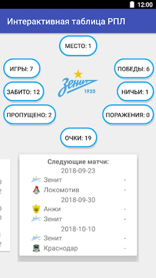 Each item of statistics is presented in the form of a button that you can click and get detailed information on all games (past and next), statistics of goals scored and missed goals (with the names of players and number of goals), separate lists of victories, defeats and draws, as well as the number of points home and away.