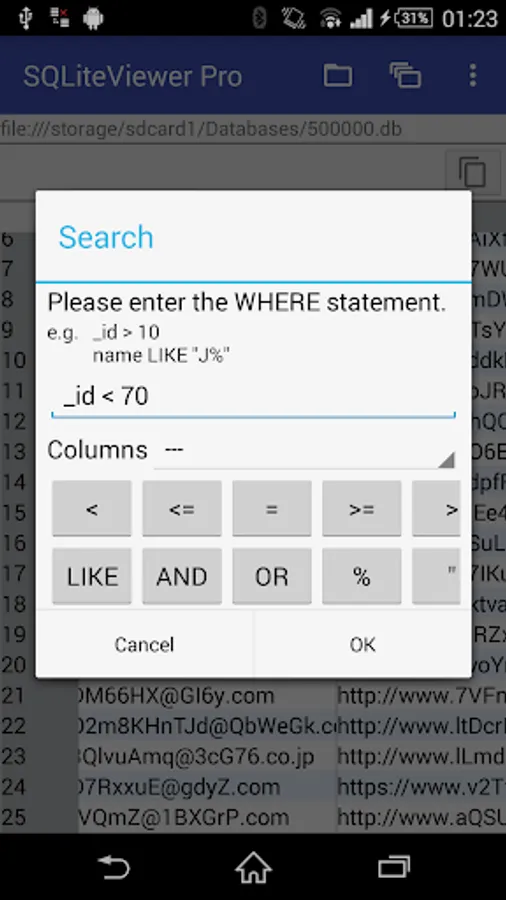 https://play.google.com/store/apps/details?id=com.kokufu.android.apps.sqliteviewer.free