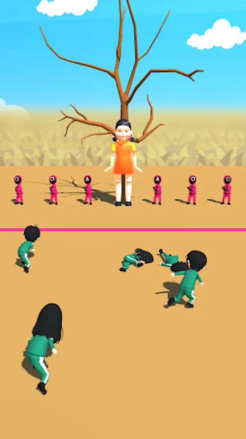 The red light sign for stop moving forward and wait for the green light to moving forward from the tree. There have many tasks like Candy Challenge squid 3d, will be Eliminate and never can perform another challenge like hair challenge and rich run 3d. Eliminate Player will be knocked out in the squid master.