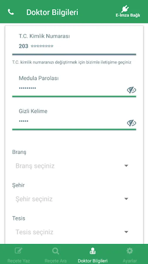 * Complete the "Doctor Information" screen from within the application