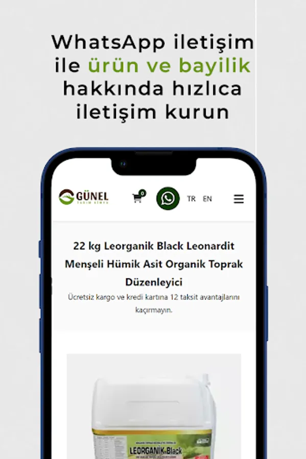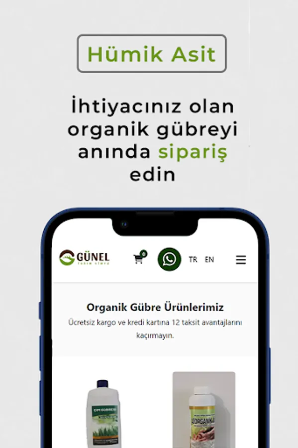 You can order our Leonardite and herbal humic acid and other organic agricultural fertilizer products via our application with affordable 12 installments and free shipping option. All of our products are domestic production.
