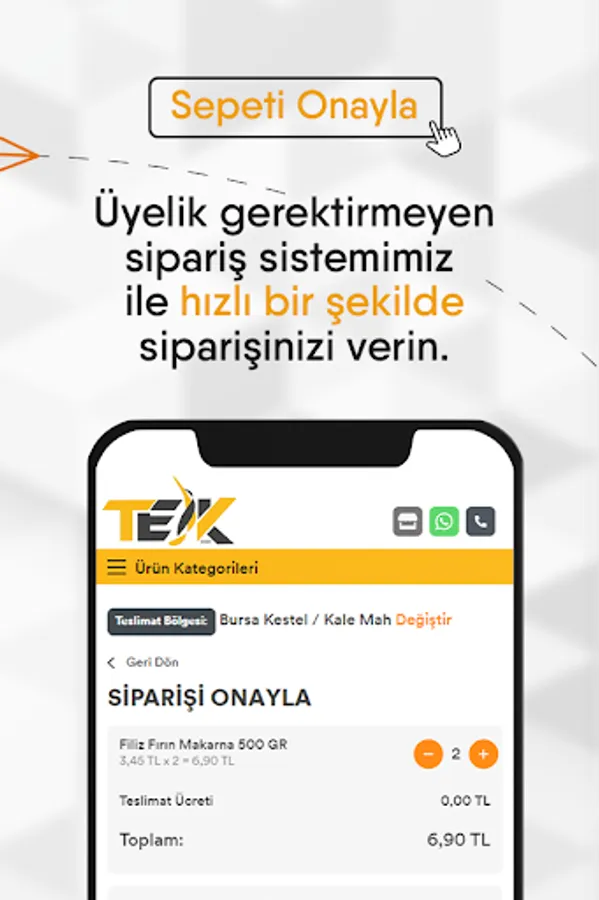 Online sipariş sistemiz üyelik gerektirmeden WhatsApp desteği ile kolayca sipariş vermenizi ve siparişinizi takip etmenizi sağlar. Üye olmasanızda verdiğiniz sipariş bilgileri telefonunuzda tutularak gelecek siparişleriniz için kullanılabilir.