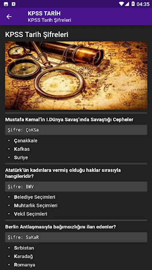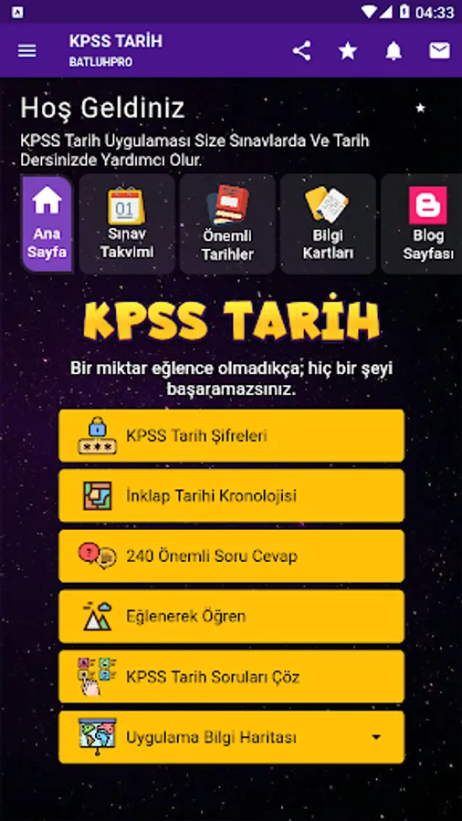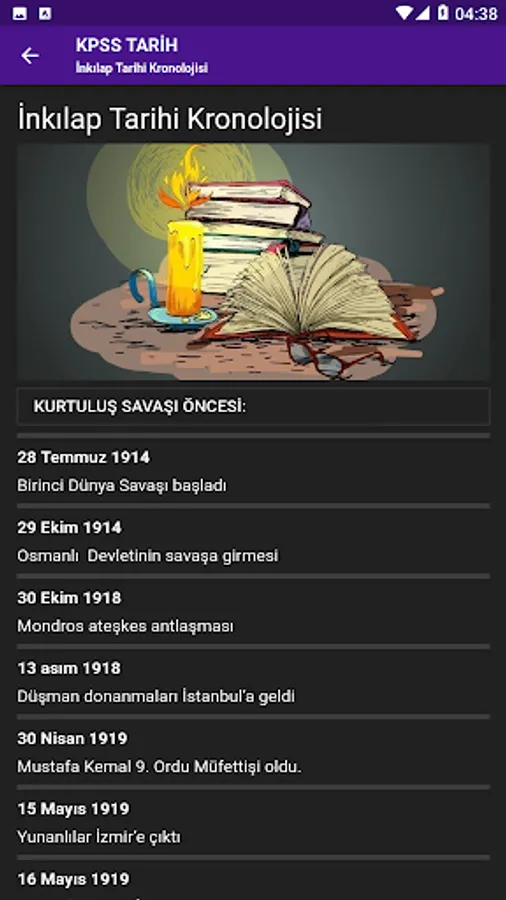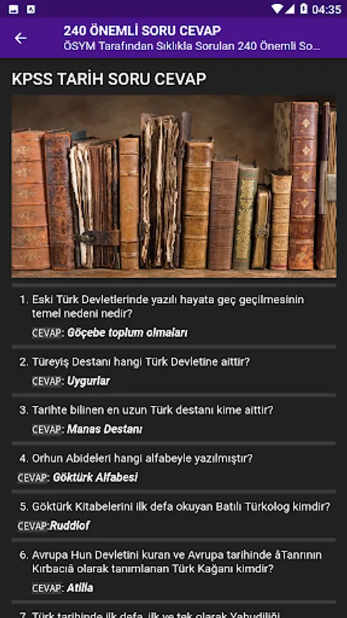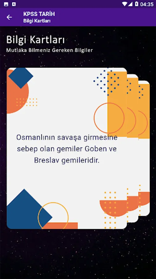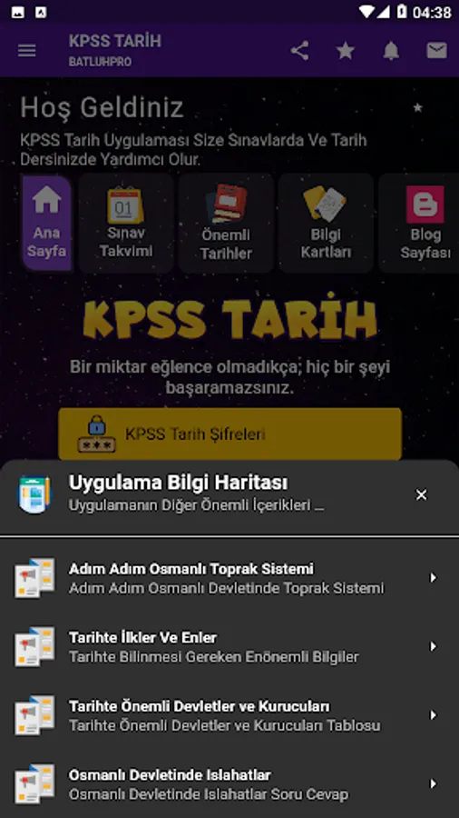 KPSS History application helps you in your exams in History lesson and Topics. My geography application is your best assistant in the History test, which is included in the general aptitude test and asks an average of 25 questions, to create an application where the candidates can be more clear and easily study and read information from their smartphones, which are next to them in every sense, and to increase the success of the candidates.