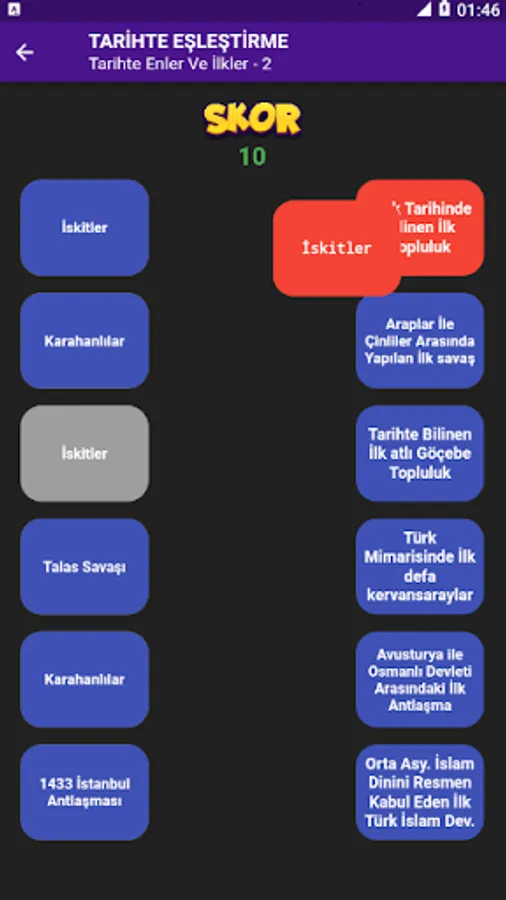 Learn by Matching: "You can learn many subjects very easily with the drag and drop method selected from the most important subjects of KPSS History"