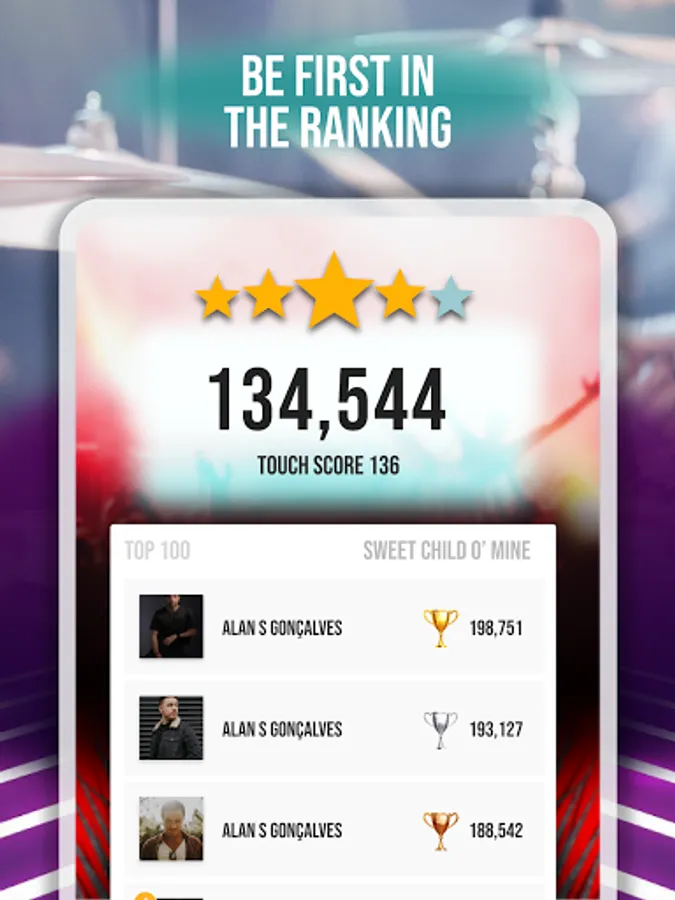 For you to become a drummer, just tap the pieces at the right time and you'll be able to play any song.