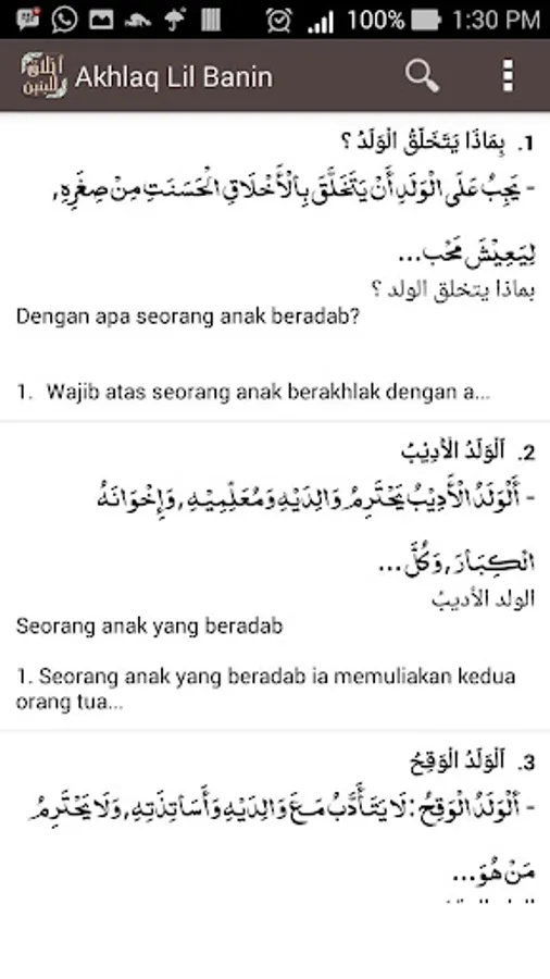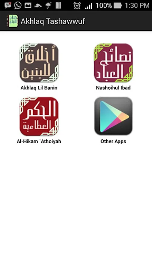 This application contains the yellow book and translations of morality, Hadith, atsar, and khabar ie