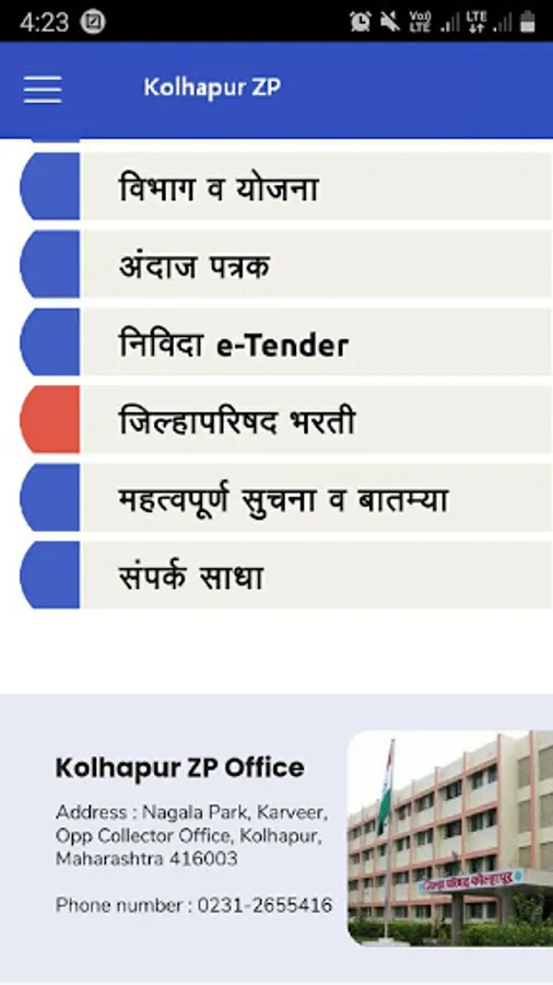 Various information like zp office contact details, scheme, department, recruitment from Kolhapur ZP's website is given in this app.