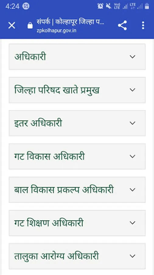 We (Dnyangroup) only develop Kolhapur ZP office website and this app. And We just show their website in this application as custom tab.