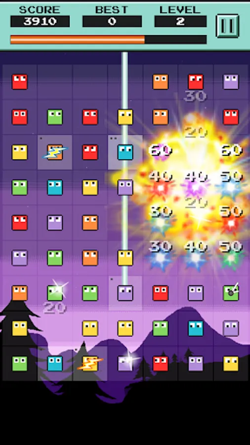 - Match 5 pixels to make a blaster that can destroy all pixels of the same color.