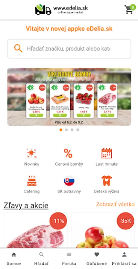 edelia.sk is the fastest online supermarket in Bratislava and its surroundings. We will deliver your purchase with fresh food to your door within 3 hours of ordering!