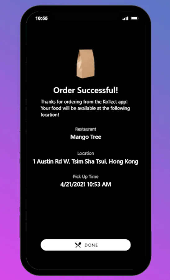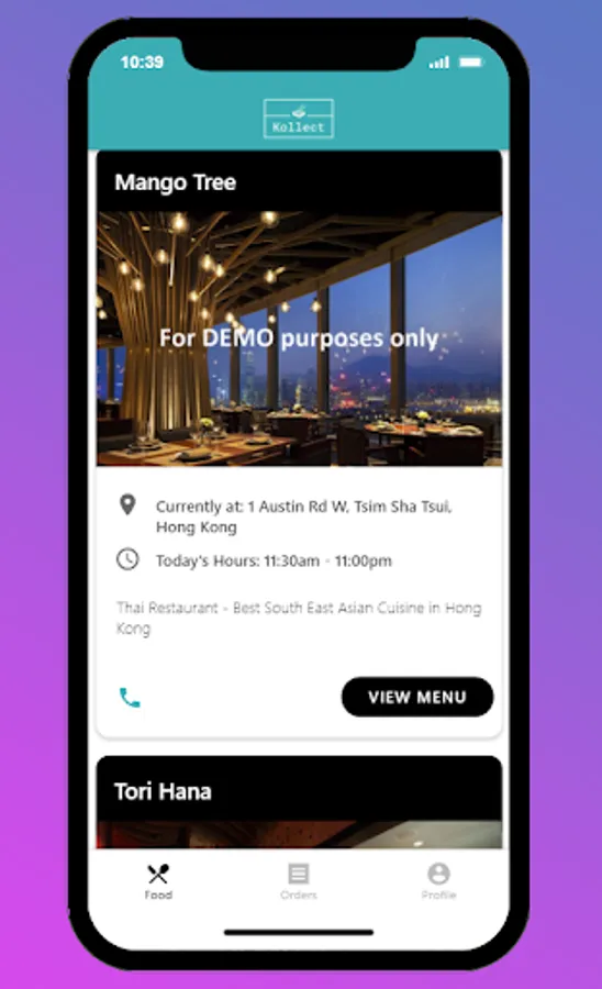 Kollect is an app which users can order food online from their neighborhood restaurants when they want. It is a very simple app which allows the takeaway order process to be efficient and seamless as possible for both the user and the restaurant.